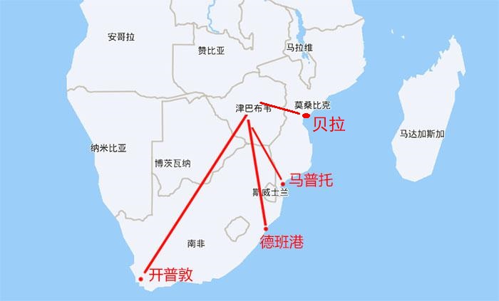 2.海運到莫桑比克的貝拉港或者是馬普托港,再由莫桑比克走陸運到津巴布韋。這是目前最常用的方式。